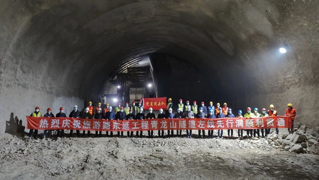 城建集團公司承建的旅游路東延工程青龍山隧道左線先導洞順利貫通