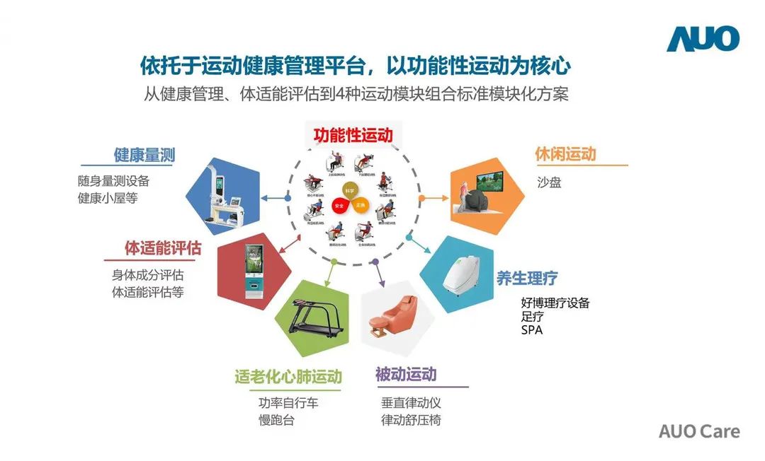 其中,運(yùn)動(dòng)健康中心配備了SMARC功能性運(yùn)動(dòng)設(shè)備、3D身體掃描儀、健康體適能評(píng)估儀、脊椎平衡放松系統(tǒng)等國(guó)內(nèi)外先進(jìn)的智能大型理療、康復(fù)設(shè)備,提供更智能、更準(zhǔn)確、更全面的健康管理服務(wù)。還設(shè)有健康管理中心、中醫(yī)調(diào)理中心及康復(fù)訓(xùn)練室,配有專業(yè)的健管師、中醫(yī)理療師。