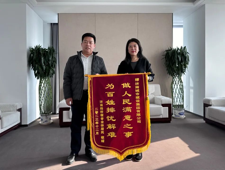 12月26日,天橋區濼口街道黨工委書記趙繼展一行到訪濟南城市建設集團并贈送錦旗,天橋區濼口街道黨工委副書記、辦事處主任胡建國,集團綜合辦公室、濱河天城相關負責同志參加活動。