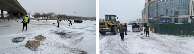 各項目在接到降雪預報后,按照要求提前做好各項清雪除冰準備工作,并安排人員在崗值守,密切關注雪情路況,第一時間撒布融雪劑、鏟雪、除冰,機械作業與人工作業交替進行,對重點路段進行鏟、推、掃、堆一體化循環作業,加快清理道路積雪,為來往行人車輛清理出安全整潔的通道,為市民群眾平安出行保駕護航。